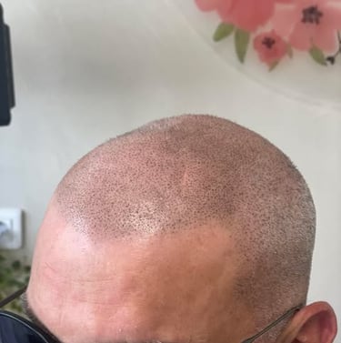 Analyse du cuir chevelu, choix de la teinte adaptée, implantation et densité, respect de la morphologie du visage et du style souhaité.Séance de micro-pigmentation
